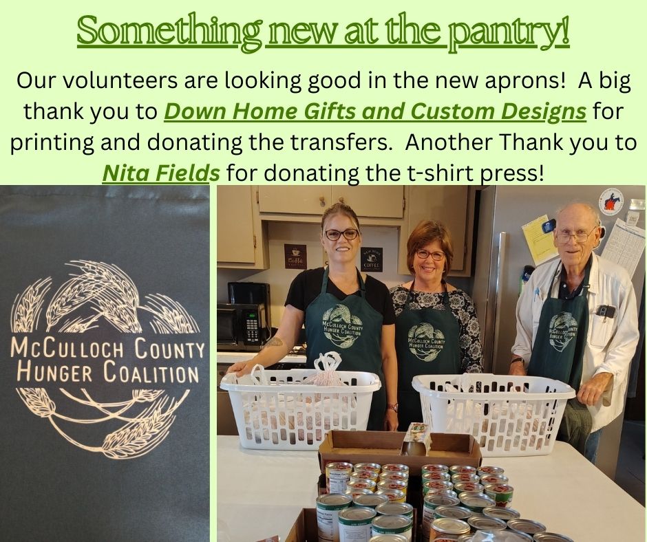 We are excited to offer our services to support more families and individuals in McCulloch County. Click here to register, and once approved, you will receive access to our online pantry.